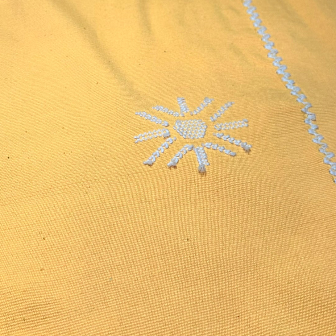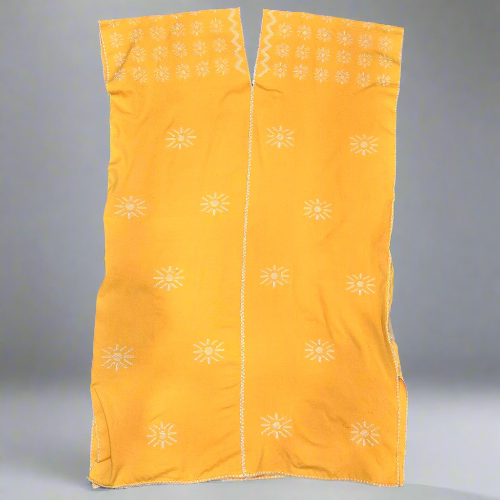 The Huipil Sol is a stunning celebration of Oaxacan artistry, handwoven with care by the skilled artisans of YOO ITA in San Juan Colorado. Featuring a radiant yellow base adorned with delicate white sun motifs, this huipil is a perfect blend of tradition and timeless beauty.